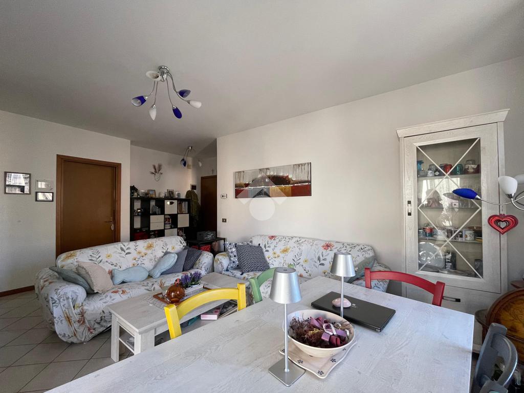 Carbonera, zona Mignagola, Studio Rinascita . propone in esclusiva appartamento trilocale situato al secondo piano senza ascensore in una palazzina degli anni '80 composta da sole 10 unità totali. L'immobile è così composto: soggiorno e cucina separata, disimpegno, una camera matrimoniale, una camera singola e un bagno con la doccia. Sono presenti due terrazze abitabili, una a cui si accede dal soggiorno e la seconda a cui si accede dal bagno. L'immobile è dotato di riscaldamento autonomo a radiatori. E' presente, inoltre, uno split dell'aria condizionata nella zona notte. A completare la proprietà un garage singolo di 11 mq al piano terra, con accesso diretto dal vano scala, e un posto auto assegnato interno alla corte condominiale. Sono presenti, inoltre, numerosi posti auto esterni riservati ai condomini. L'immobile è situato in una zona molto tranquilla ma allo stesso tempo a pochi passi dai principali servizi. Dista, infatti, 40 m dal supermercato, 100 m dal Poliambulatorio Medico e dalla Farmacia, 150 m dalla fermata dell'autobus, 230 m dalla Scuola dell'Infanzia e 250 m dalla Scuola Primaria.