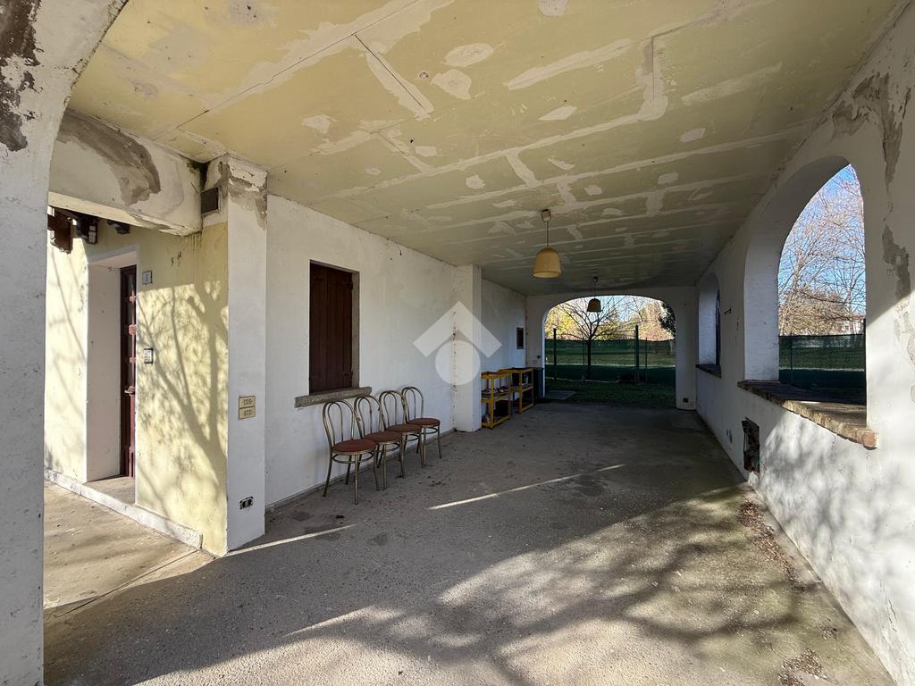Carbonera, zona Mignagola, Studio Rinascita propone in esclusiva villa singola del 1950 su due livelli fuori terra con scoperto privato di 352 mq. L'immobile è così composto al piano terra: ingresso, cucina, sala da pranzo e due magazzini. Tramite una scala interna si accede al piano ammezzato dove è presente un bagno finestrato con la doccia. Procedendo si arriva al piano primo composto da: soggiorno e cucina open space, due camere matrimoniali e un ripostiglio. A completare la proprietà un garage singolo di 19 mq al piano terra. L'immobile dispone, inoltre, di uno spazioso scoperto di proprietà di 352 mq che si sviluppa attorno ai quattro lati dell'abitazione. Libero da subito.